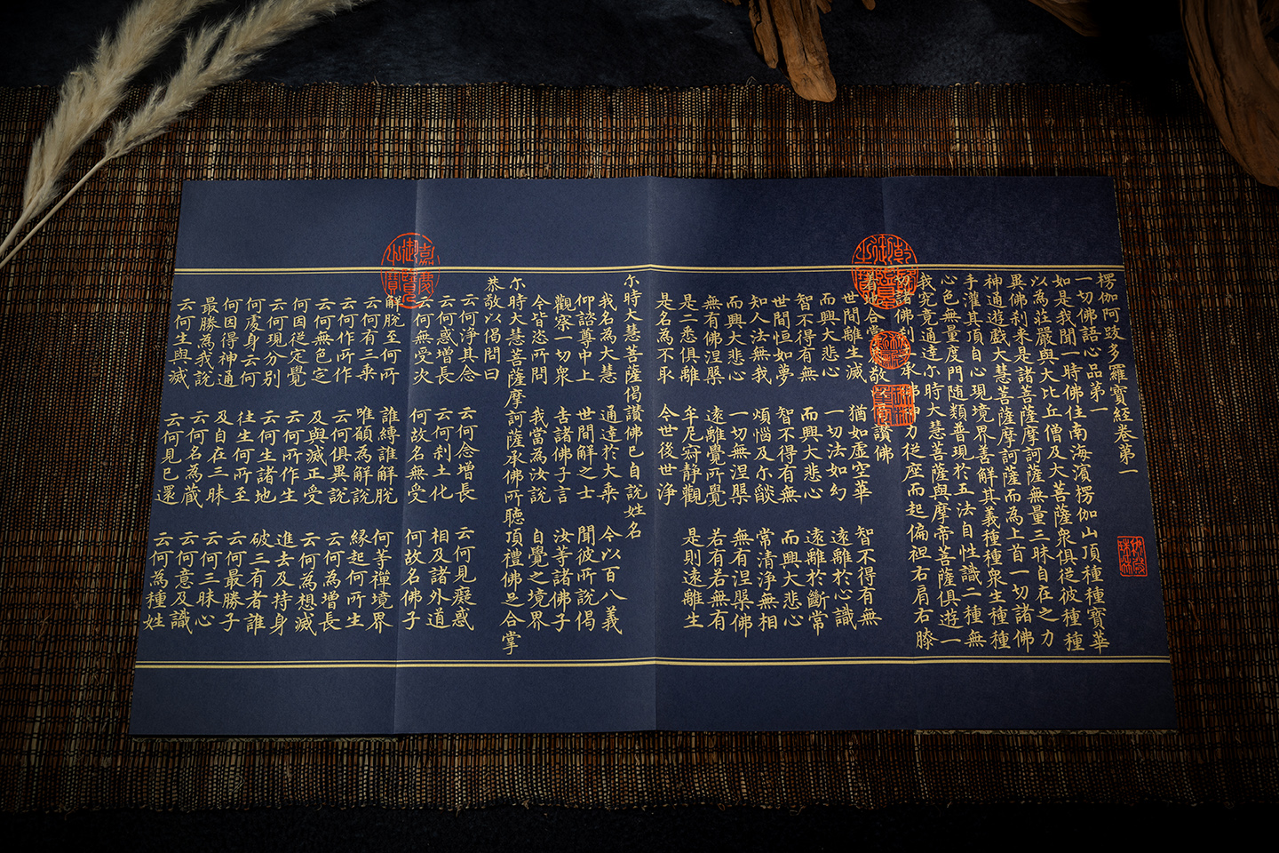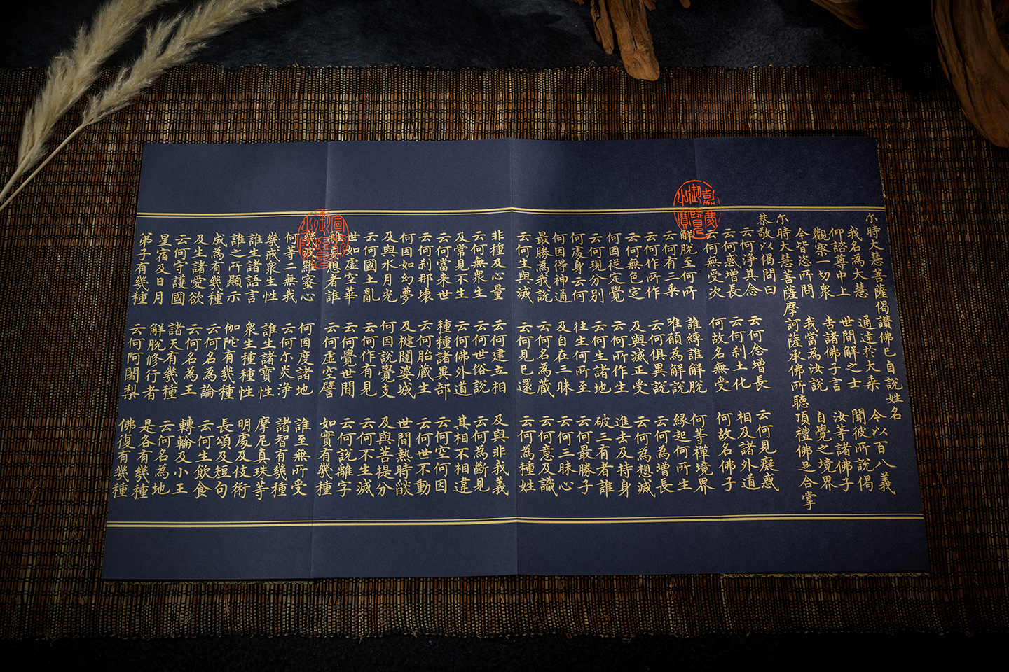 印 刷:特製金墨網印,墨色自然溫潤,莊嚴高雅。